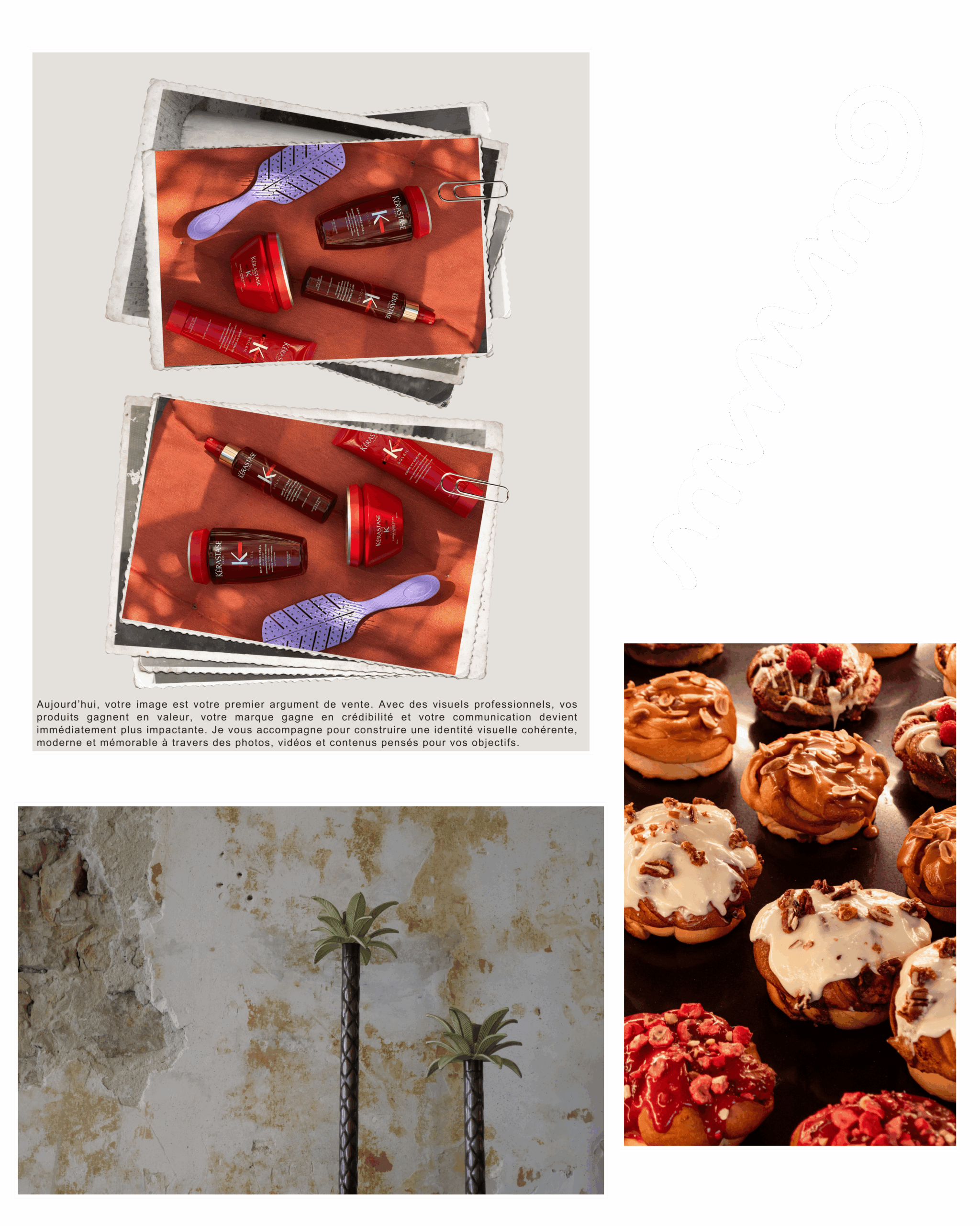 Je réalise des shootings photo et vidéo qui subliment votre univers, valorisent votre savoir-faire et créent une esthétique autour de votre marque.